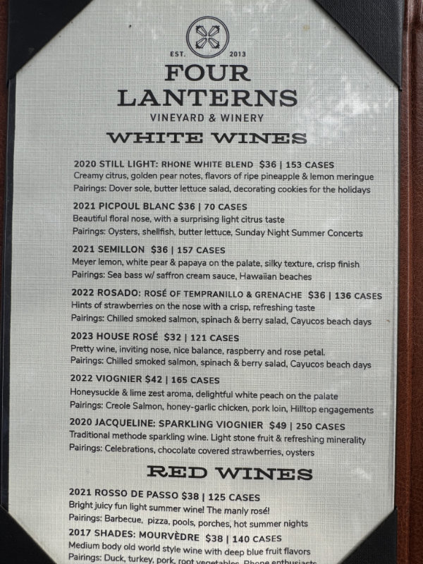 “I tell this story all the time, appointment breaks down so be prepared to pivot. I was in hillside Paso on a weekday and flipped around to pull into Four Lanterns. It was desolate empty. It was beginning of harvest so I see this a lot. I walked, noisily around the tasting room to get someone’s attention… nothing. I peeked outside, they were having lunch. I hated to bother them and introduced myself. Steve, the owner, left his lunch and the others, to share about his brand Four Lanterns, his land stewardship and his winemaking style. You just learned a lot about this man. He had staff that could have taken time with me but Steve went the extra step to make me feel comfortable on his land. Ironically, he isn’t this gregarious creature that would speak to everyone in the room; quite contrary. He believes in taking care of the land, simple but high brow winemaking and opening his doors for people to enjoy his land. Simple but powerful. I see you and appreciate you Steve. You’re good people.”